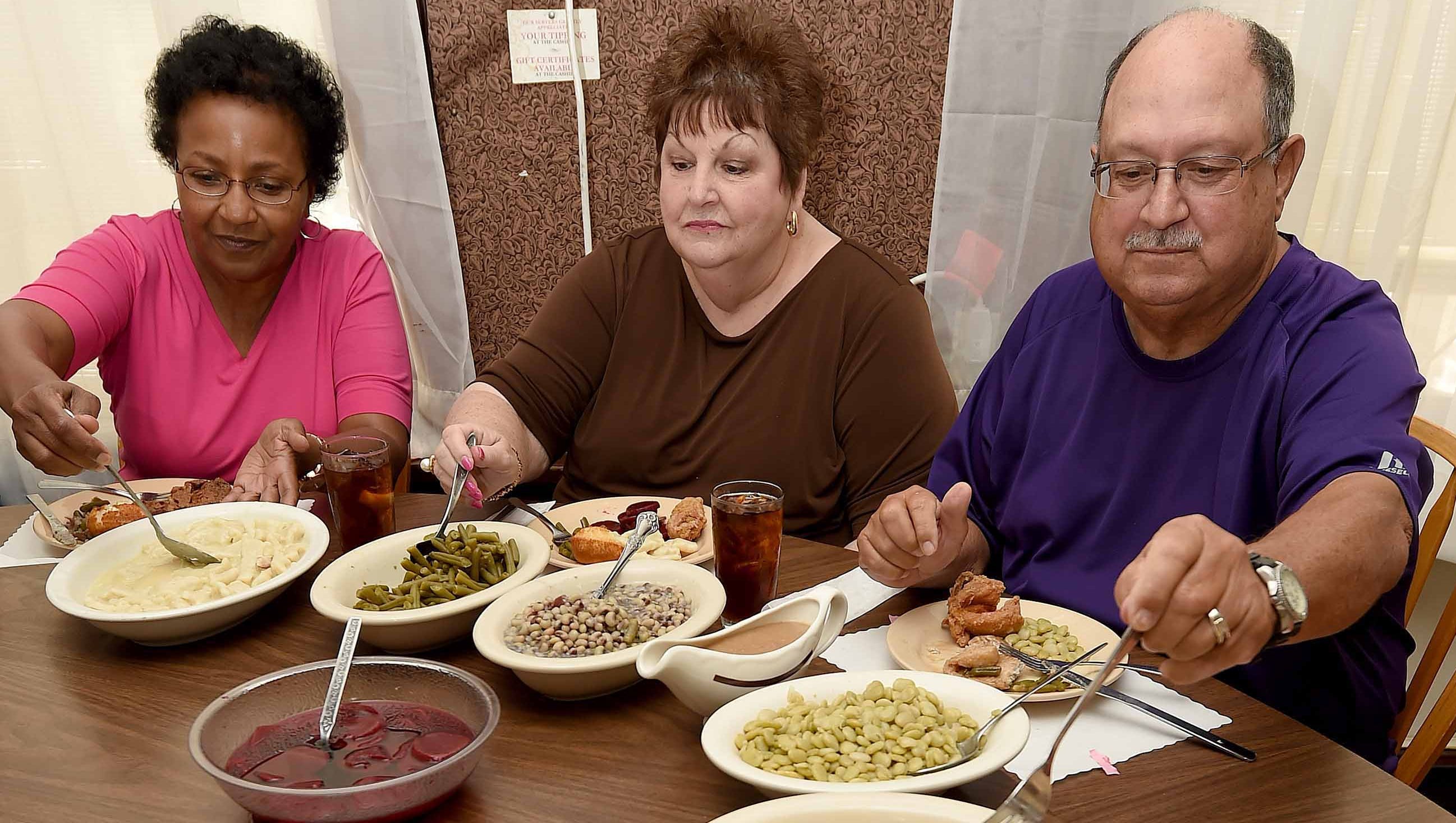 Mccomb S Dinner Bell Round Tables Piled With Southern Fare